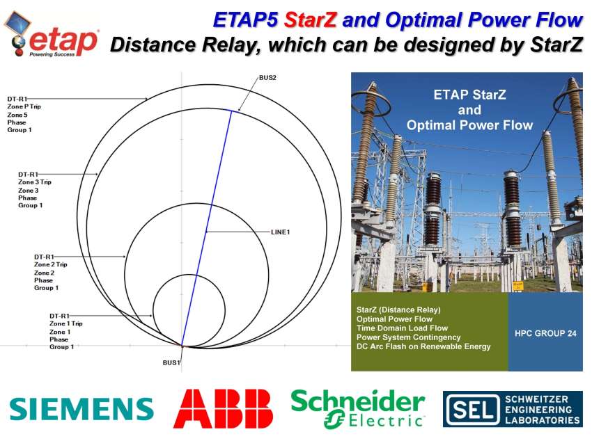 Transmission & Distribution Protection, Calculate Residual Compensation, Model Specific Setting (Mho and Quadrilateral), Optimal Power Flow to Solve Power System Load Flow, Minimize Generation Fuel & Energy Costs, Bus Voltage & Branch Flow Constraint, Time Series Load Flow, Contingency System N-1 (Power System Security), Time Domain for Energy Management, High Voltage Arc Flash on Transmission Line (OSHA, NESC and NFPA), DC Arc Flash on Solar PV